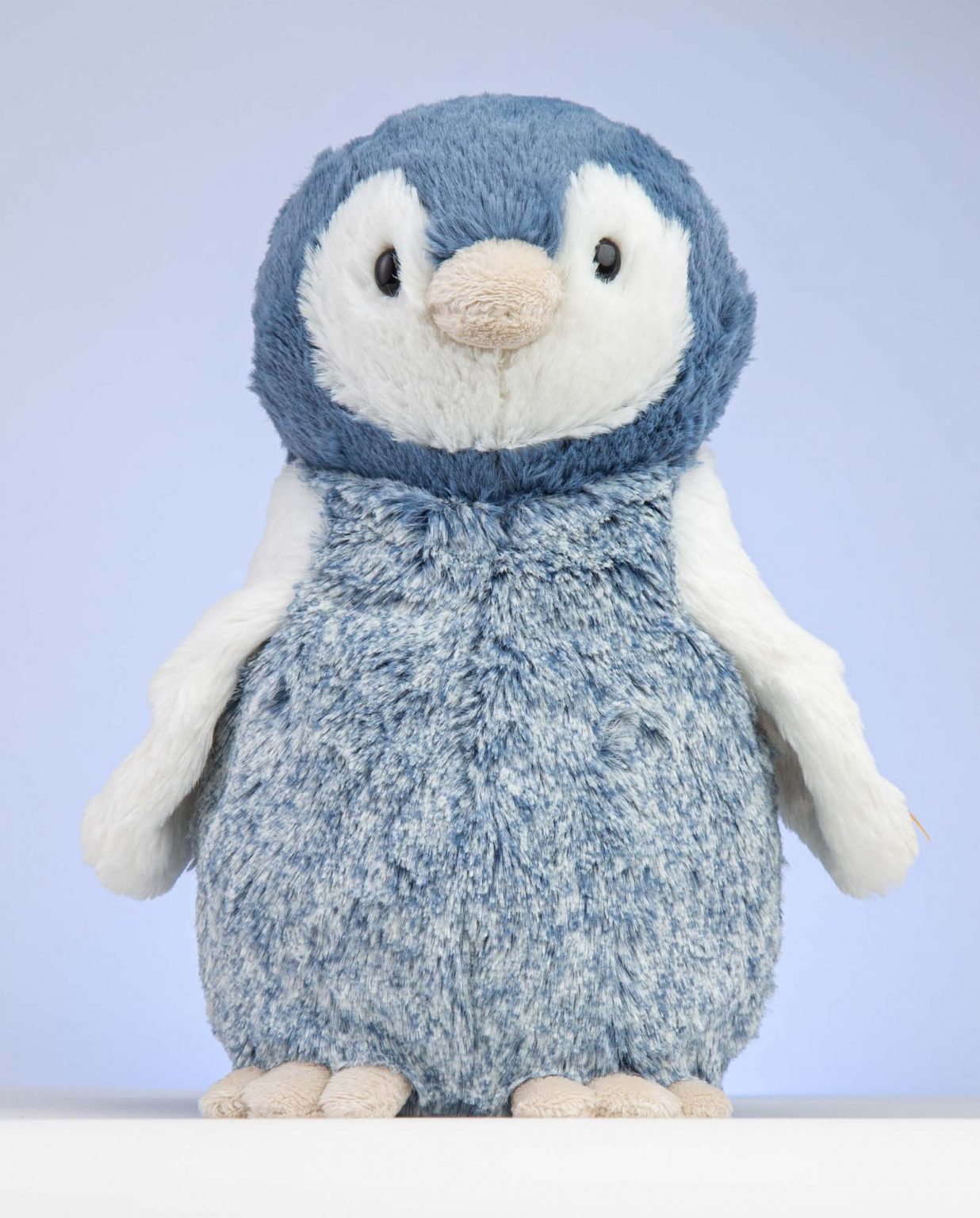This is a super happy fluffy Penguin. Paule Penguin is soooo adorable and snuggly with her soft ice blue fur and white flippers and feet! Paule penguin is 22cm tall and irresistibly sweet.  Paule penguin is a cuddly gift for all ages from birth and comes with your personalised message medal as standard with the option to add our special Send a Cuddly gift box.