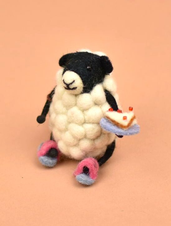Felt Sheep with Cake on a Plate