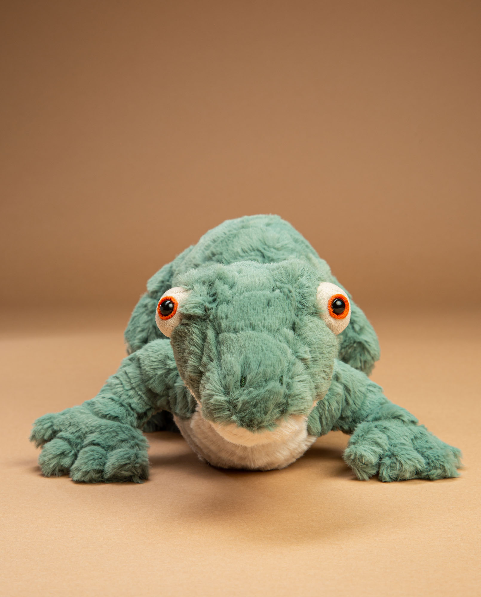 Meet Gorka Gecko with her beige tummy and knobbly toes! This loveable lizard is perfect for sending to someone who is interested in all things reptile!  She is 15cm long with a wonderful springy tail, textured teal plush and glorious boggly eyes!
