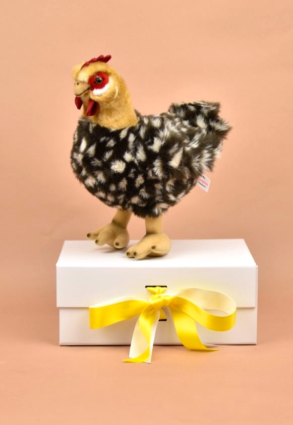 Our eggs-quisite Speckled Hen is made from the highest quality soft plush. This beautiful hen with her brown and white plumage, red comb, and little eyes is an egg-ceptional gift for all ages from birth upwards.