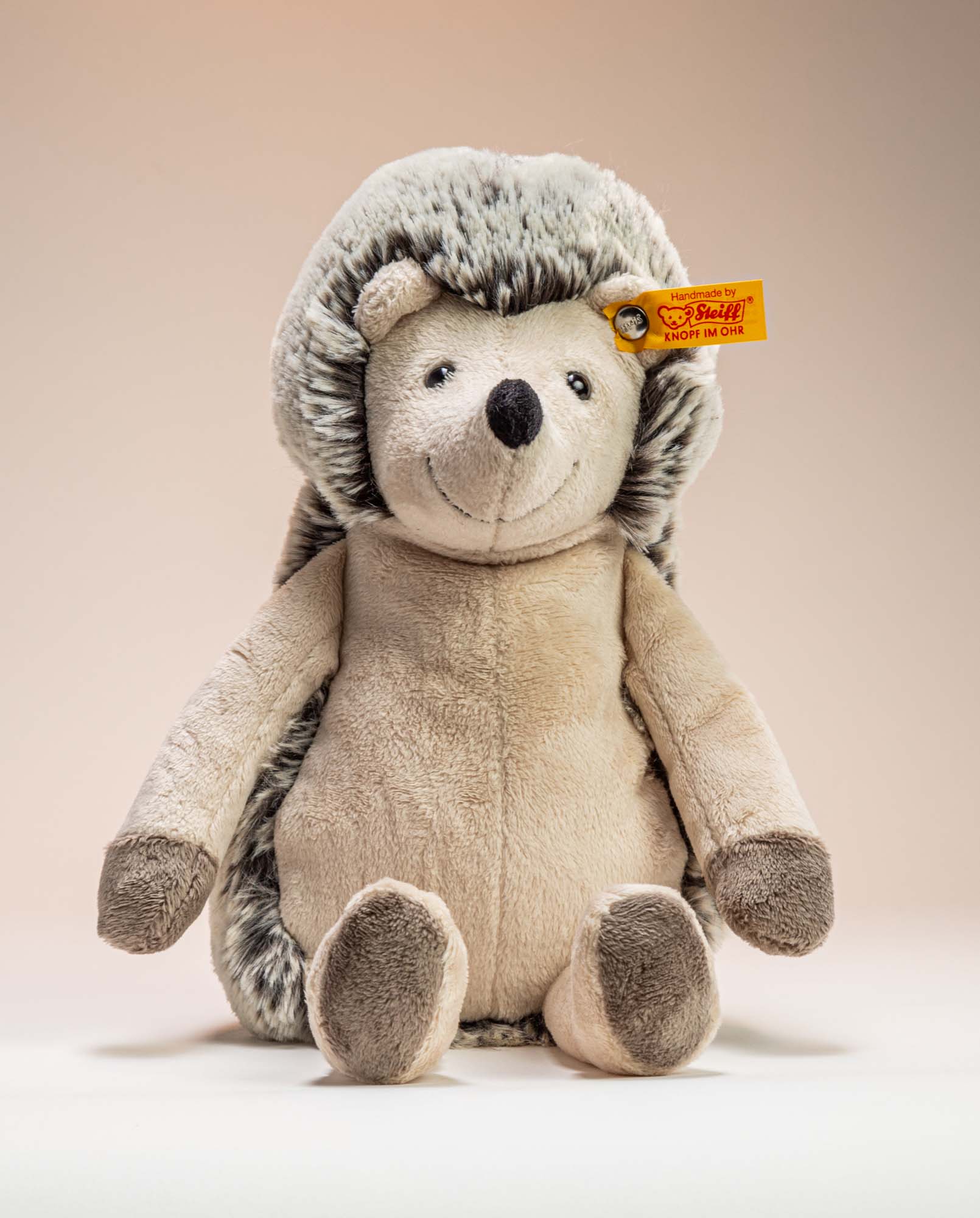 Real life hedgehogs are known for their sharp spikes but this hedgehog is quite the opposite! Made of the softest plush, this Steiff cuddly has the quality trademark yellow ribbon and button in his ear so you know he’s a top quality cuddler!  He’s 30cm in size and comes with your personalised message medal as standard with the option to add our special Send a Cuddly presentation box with choice of ribbons.